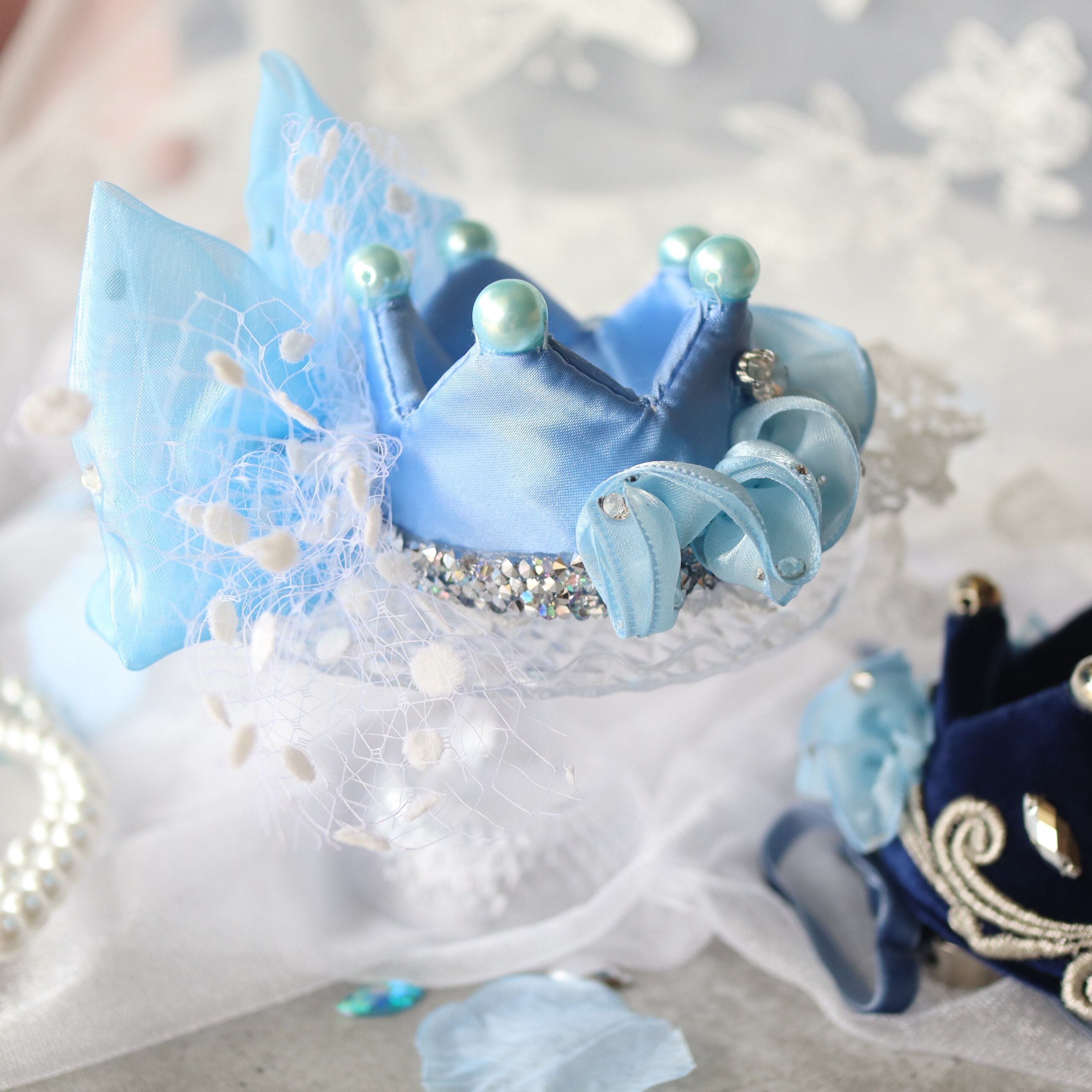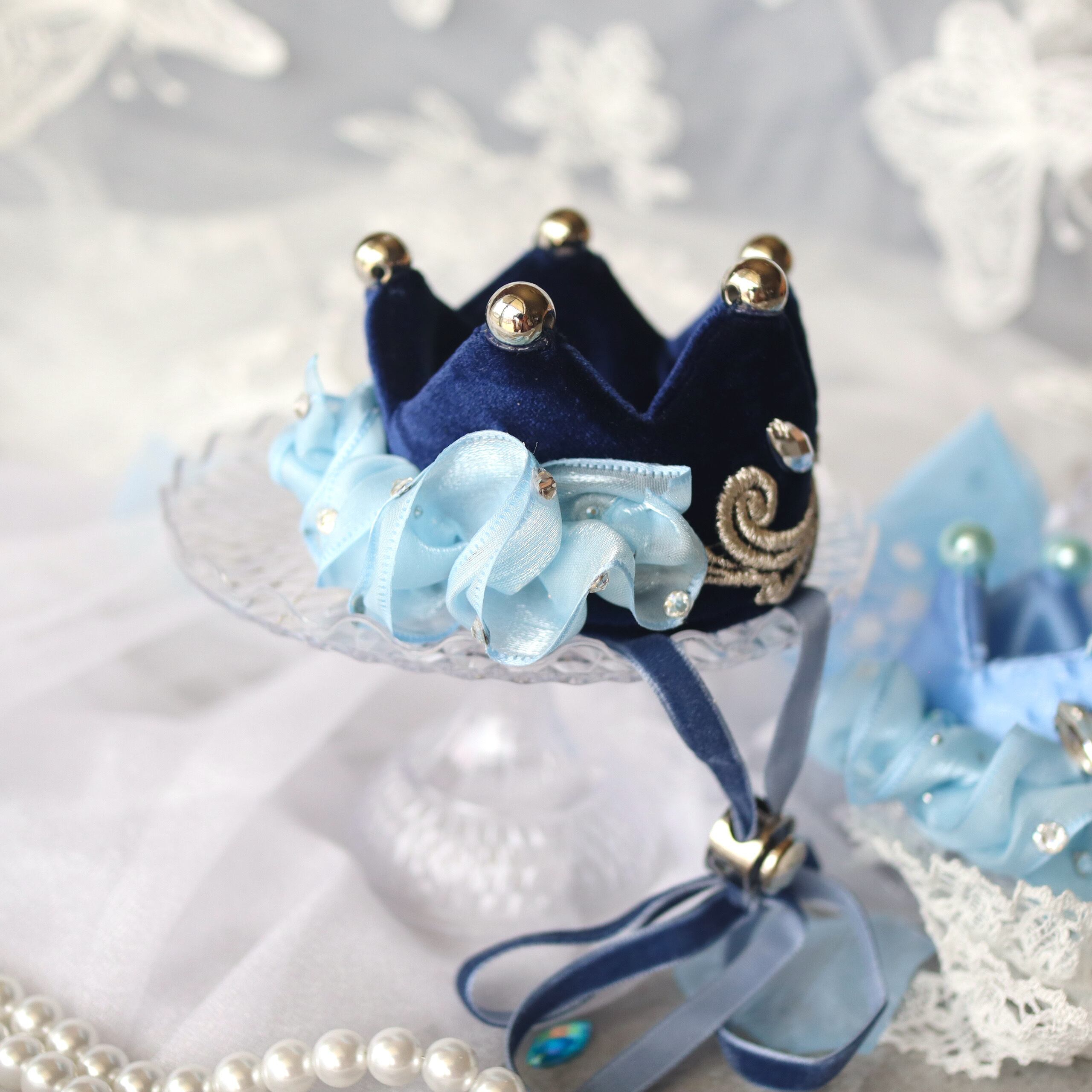お姫さまのクラウンは、前後を入れ替えて楽しめる2WAYスタイル。リボンを立体的にあしらうことで、どの角度から見ても華やかで印象的にしてみました。