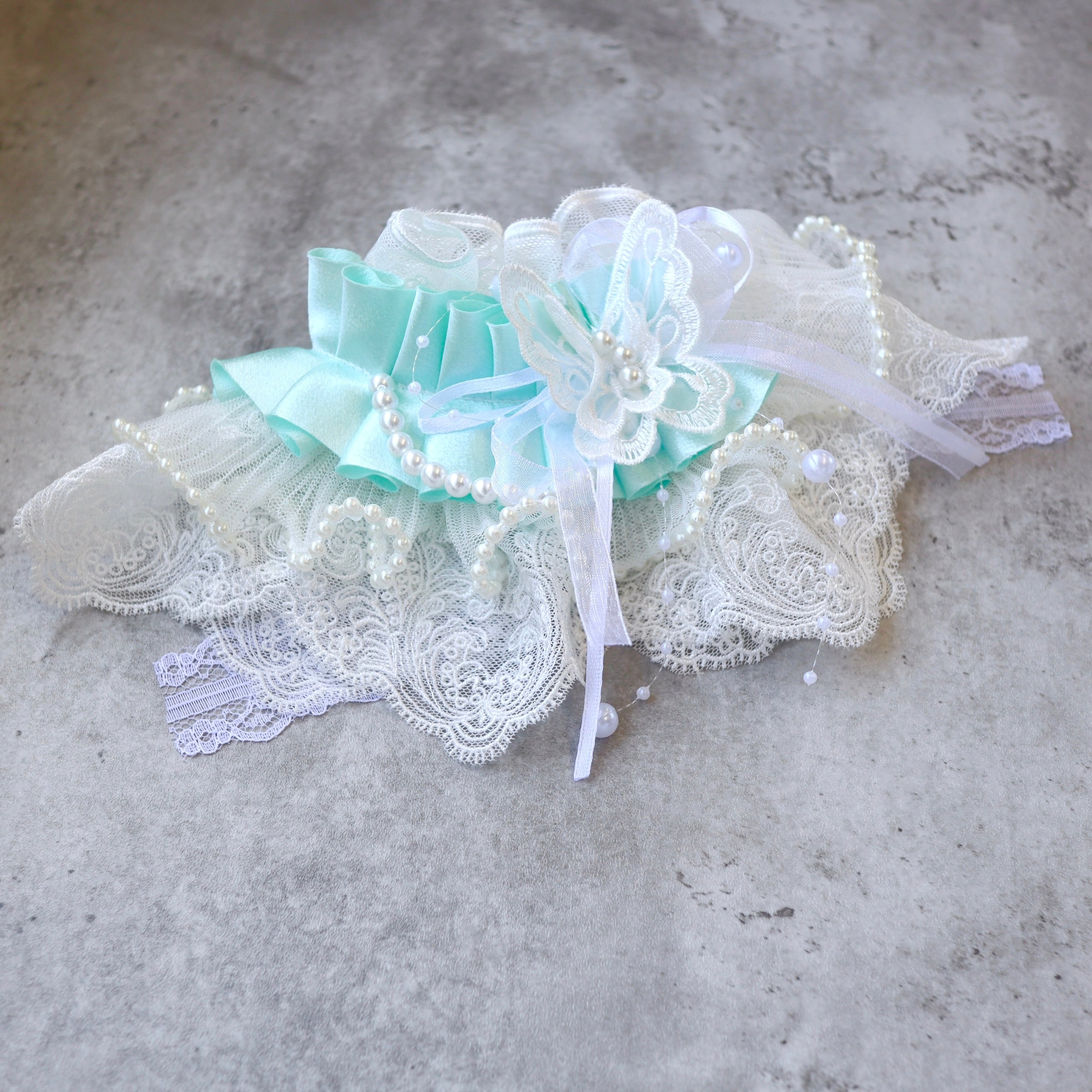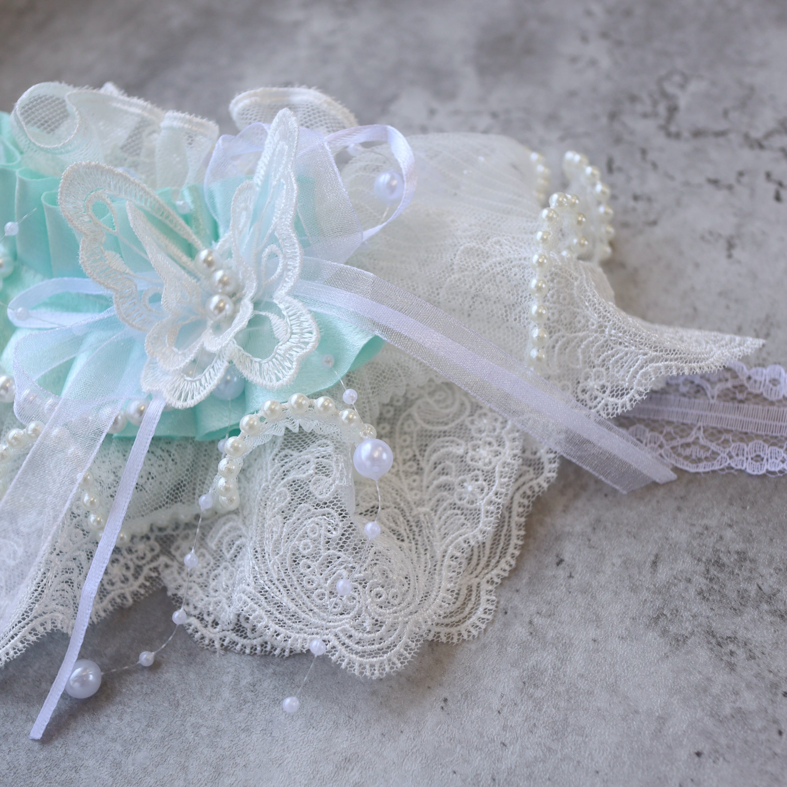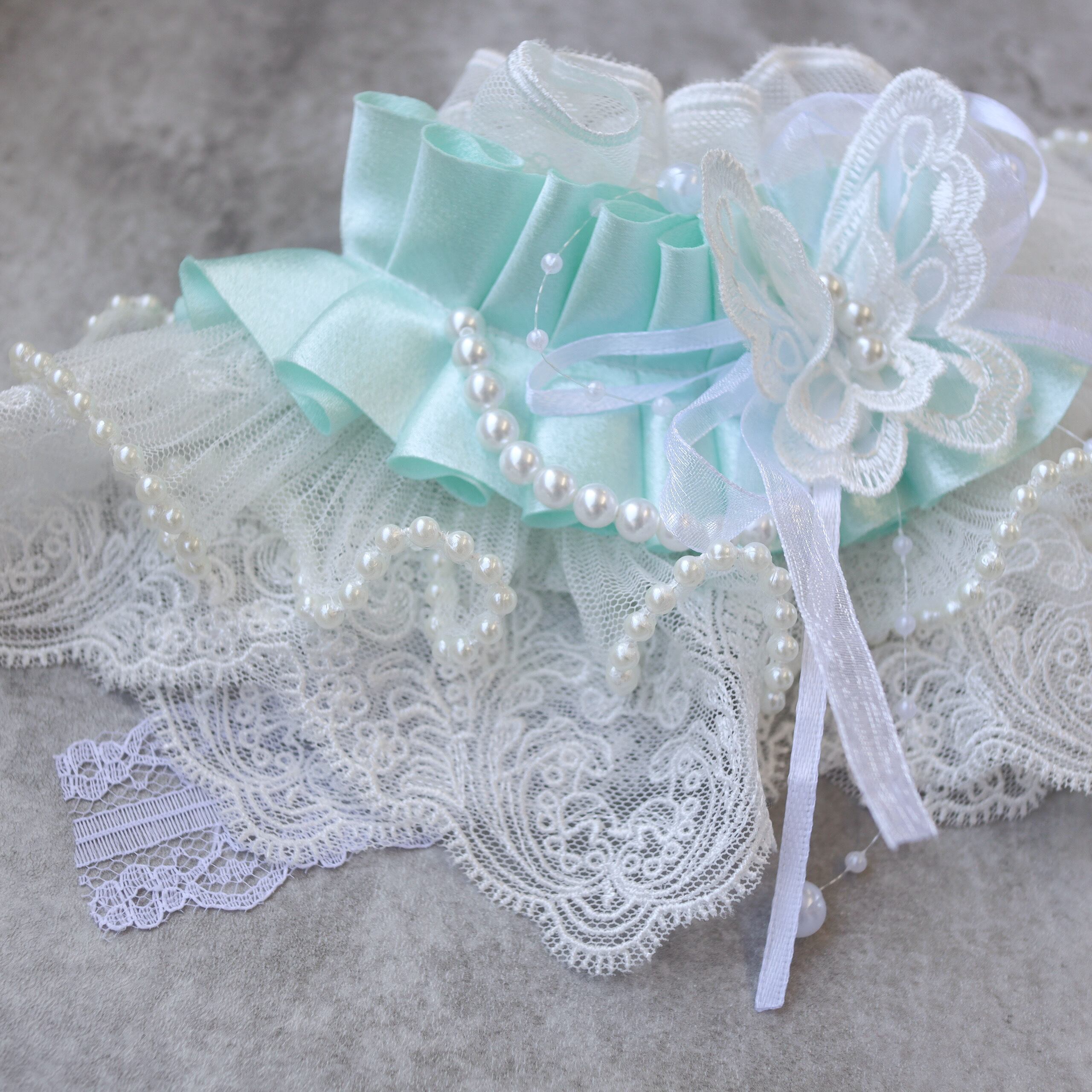 やさしいミントカラーのリボンをアクセントに。
