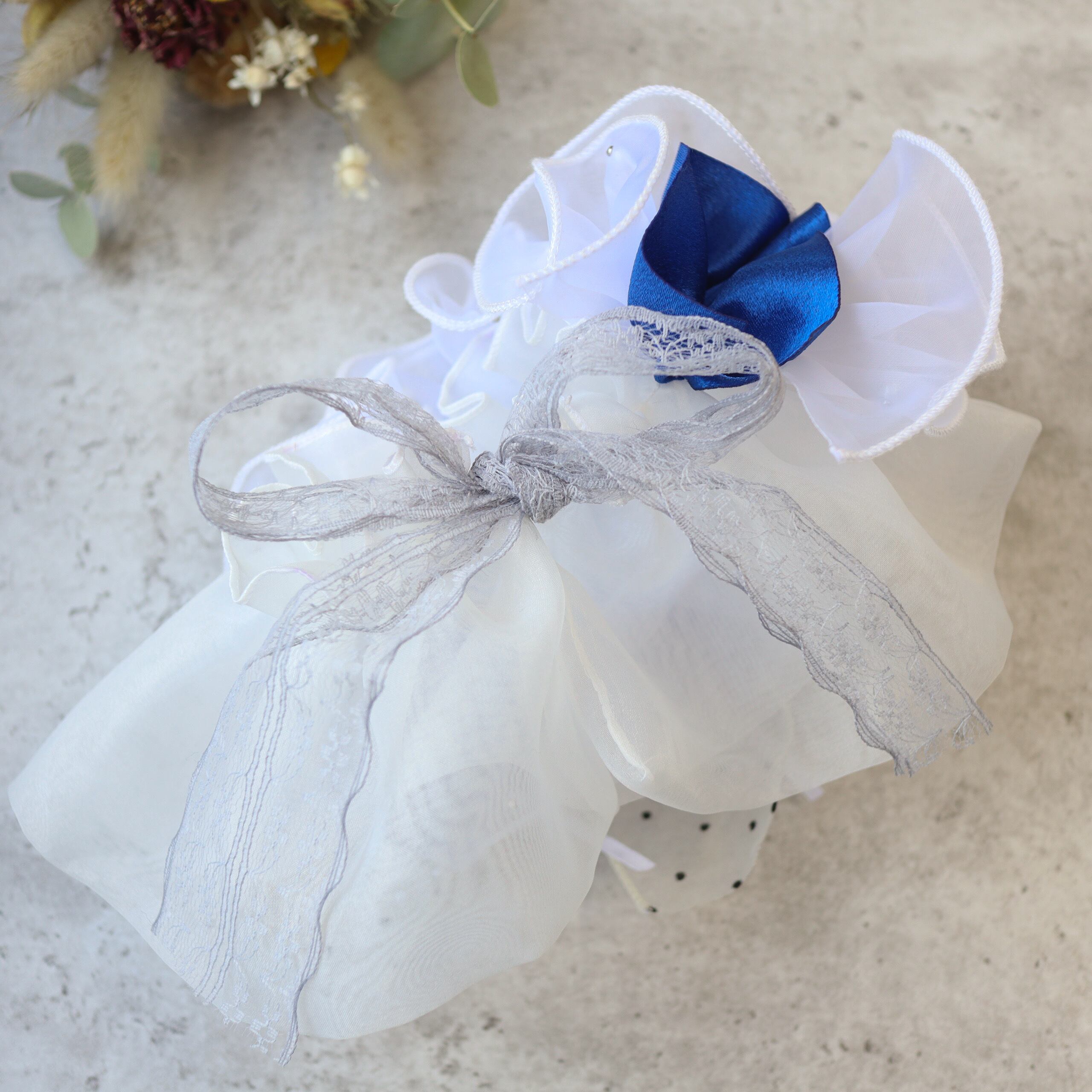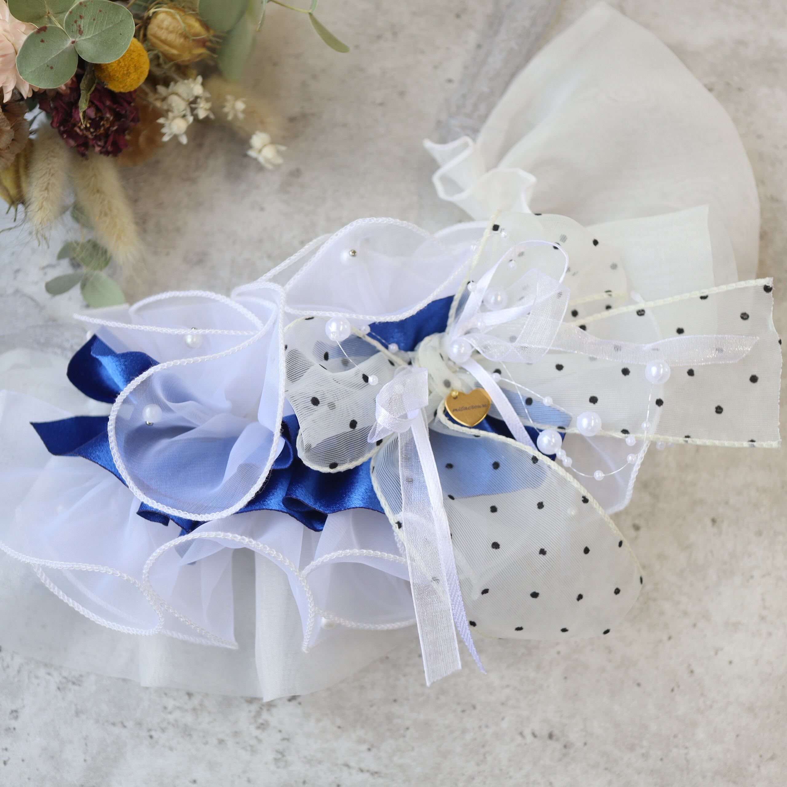 チュールやリボンを重ね、