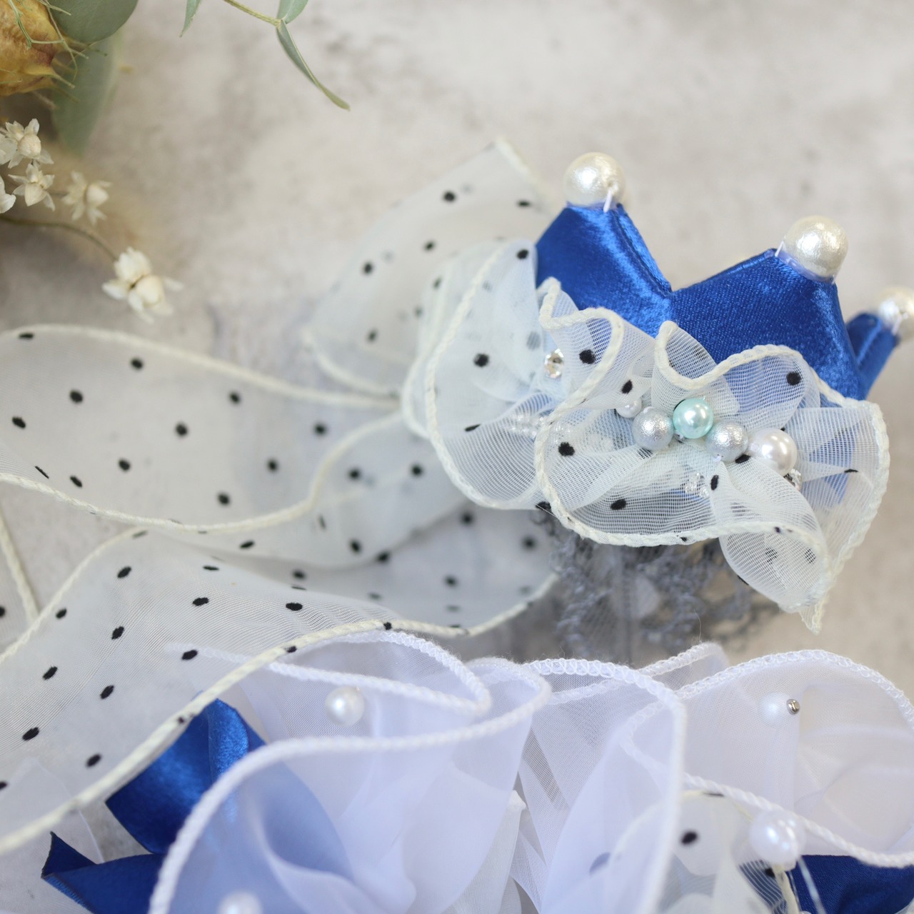 ・クラウン 直径6cm アゴリボン ストッパー付き各30cmづつ