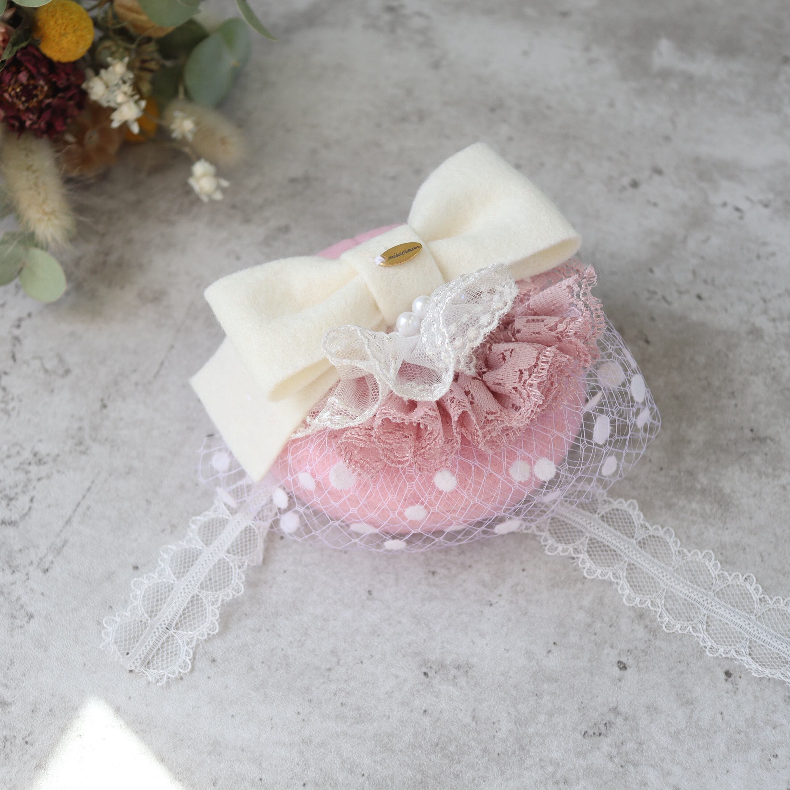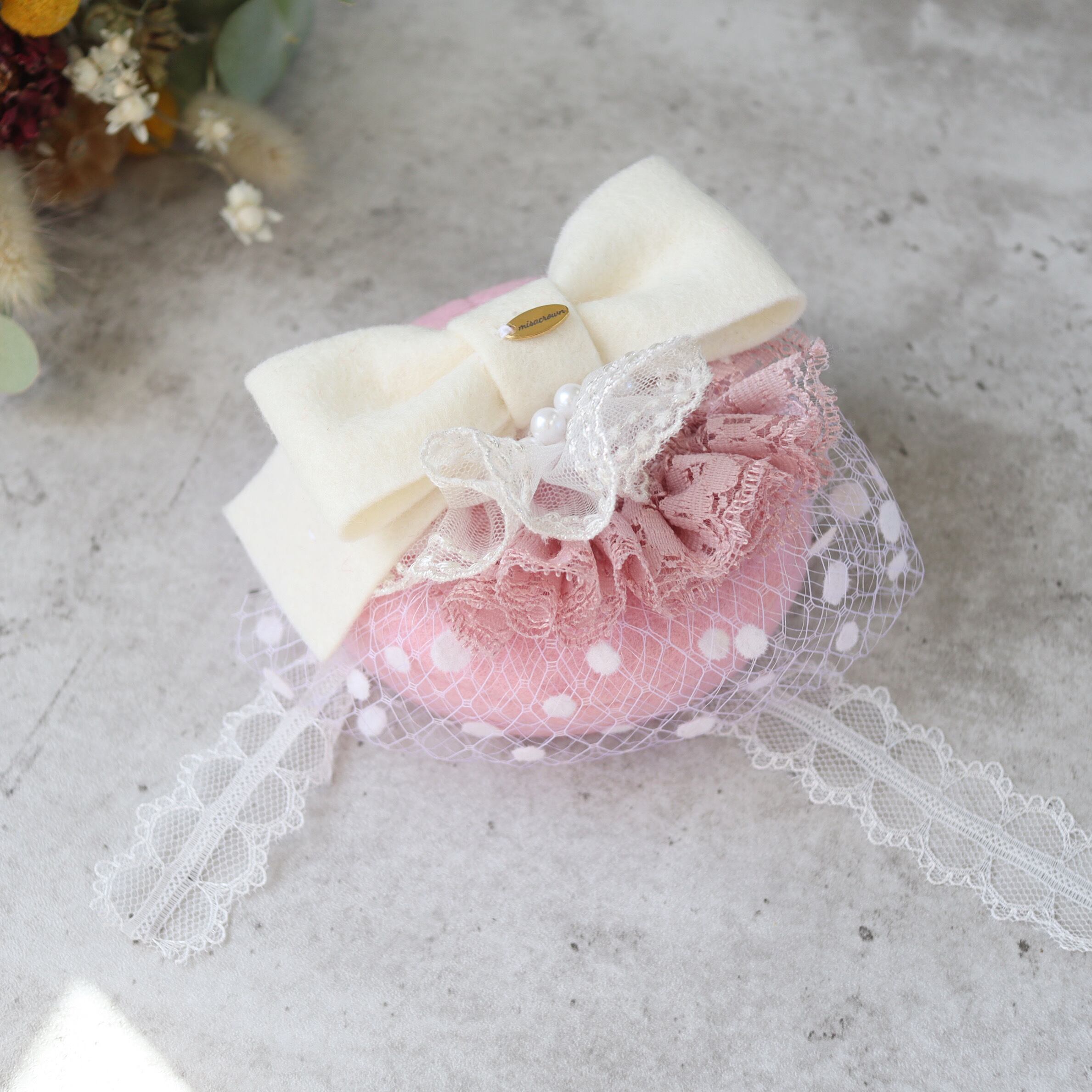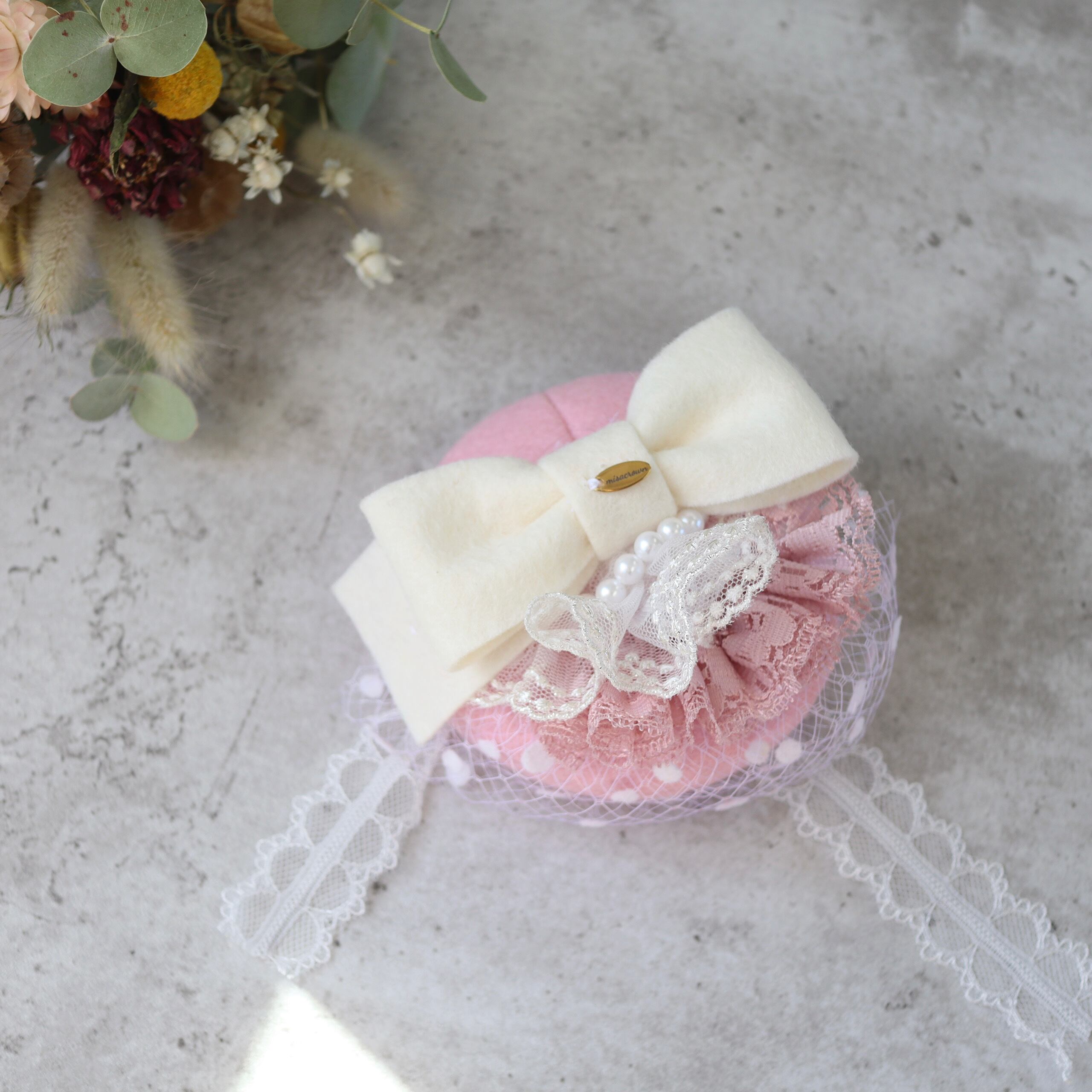 【即納品/完成品】ロイヤル・トーク帽 ”fluffy pink"