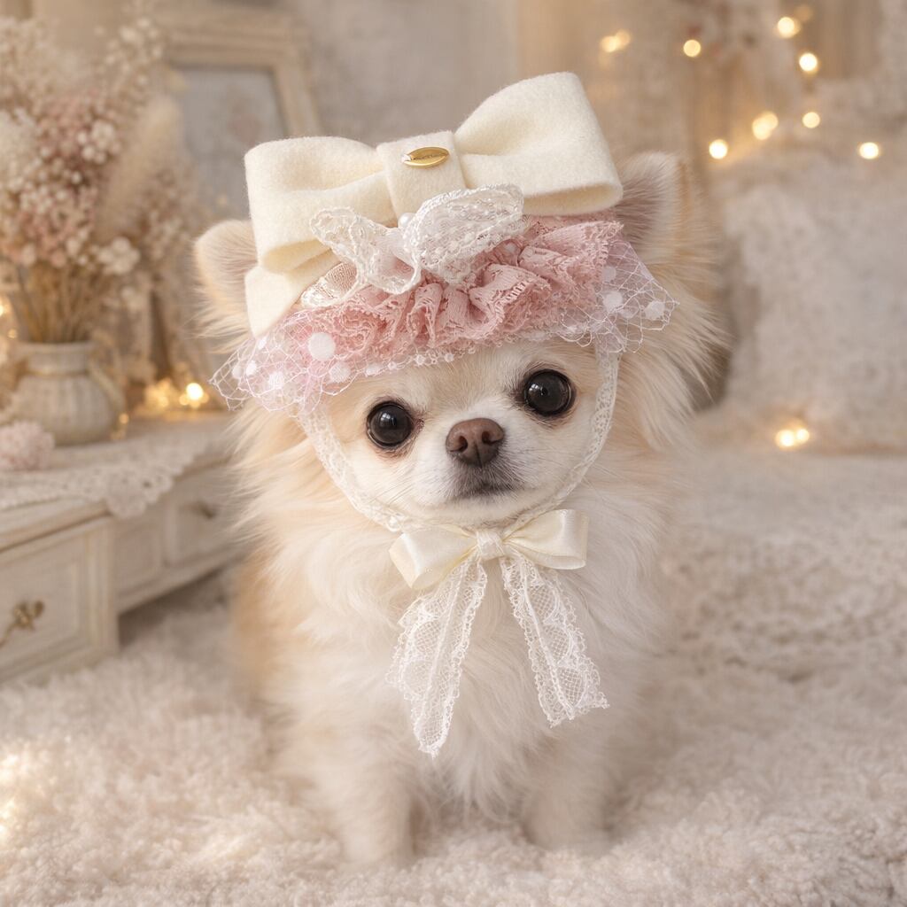 小さな頭にちょこんとのせるだけで、いつもの時間がぐっと特別なひとときになります。