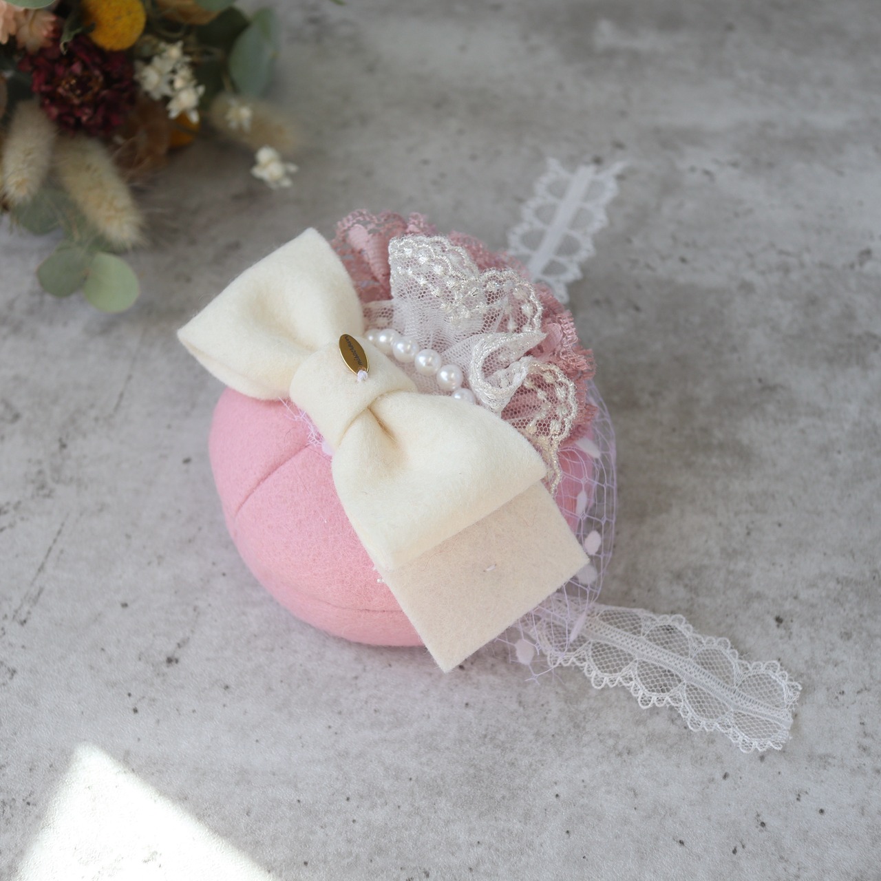 ふんわりと優しいピンクが、春の空気をまとったようなトーク帽。