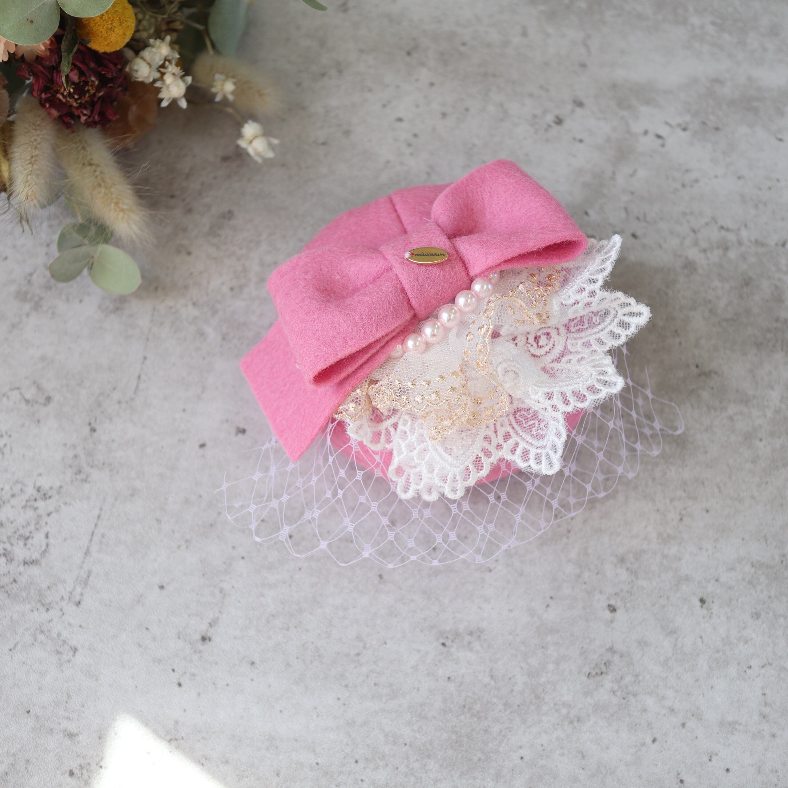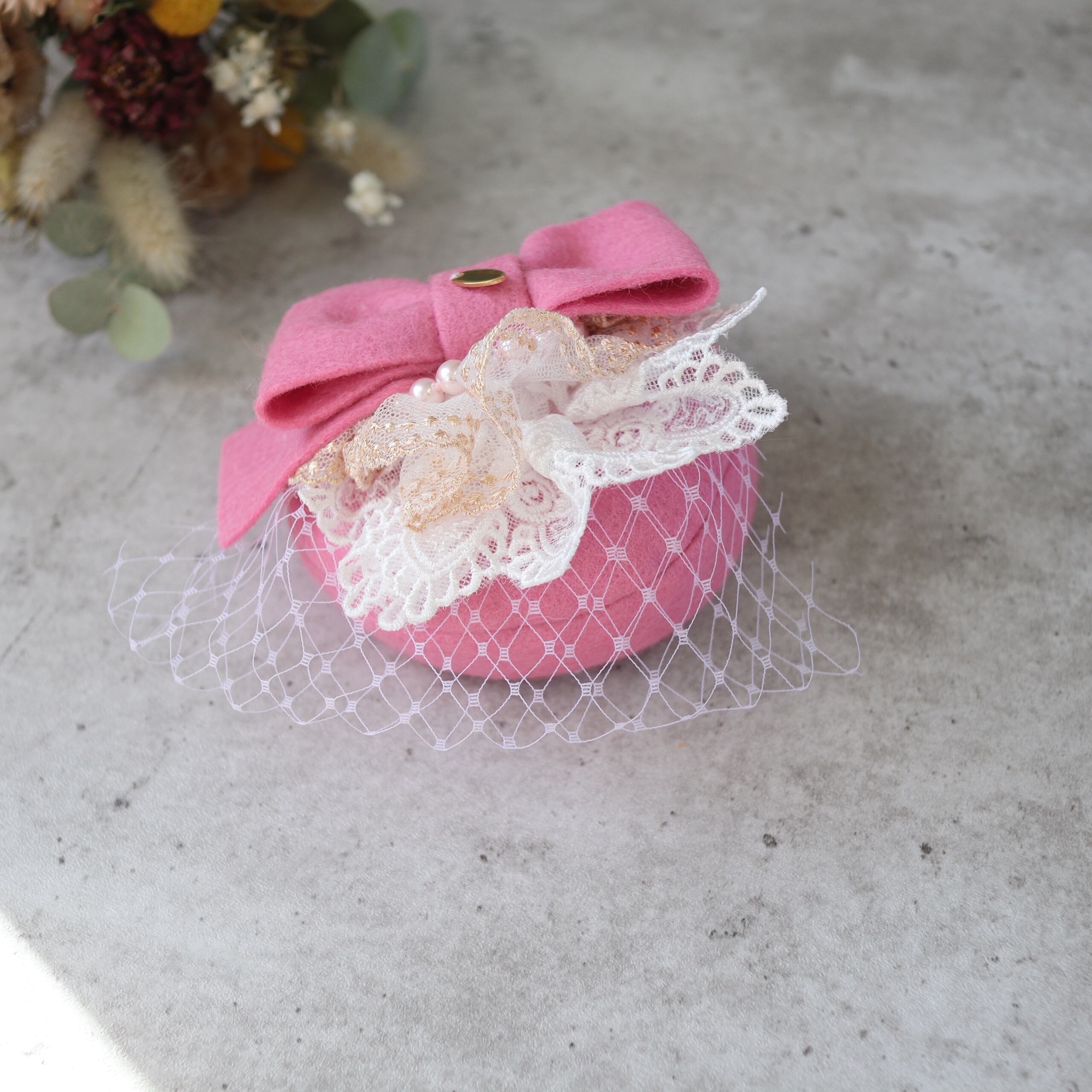 【即納品/完成品】ロイヤル・トーク帽 ”candy pink "
