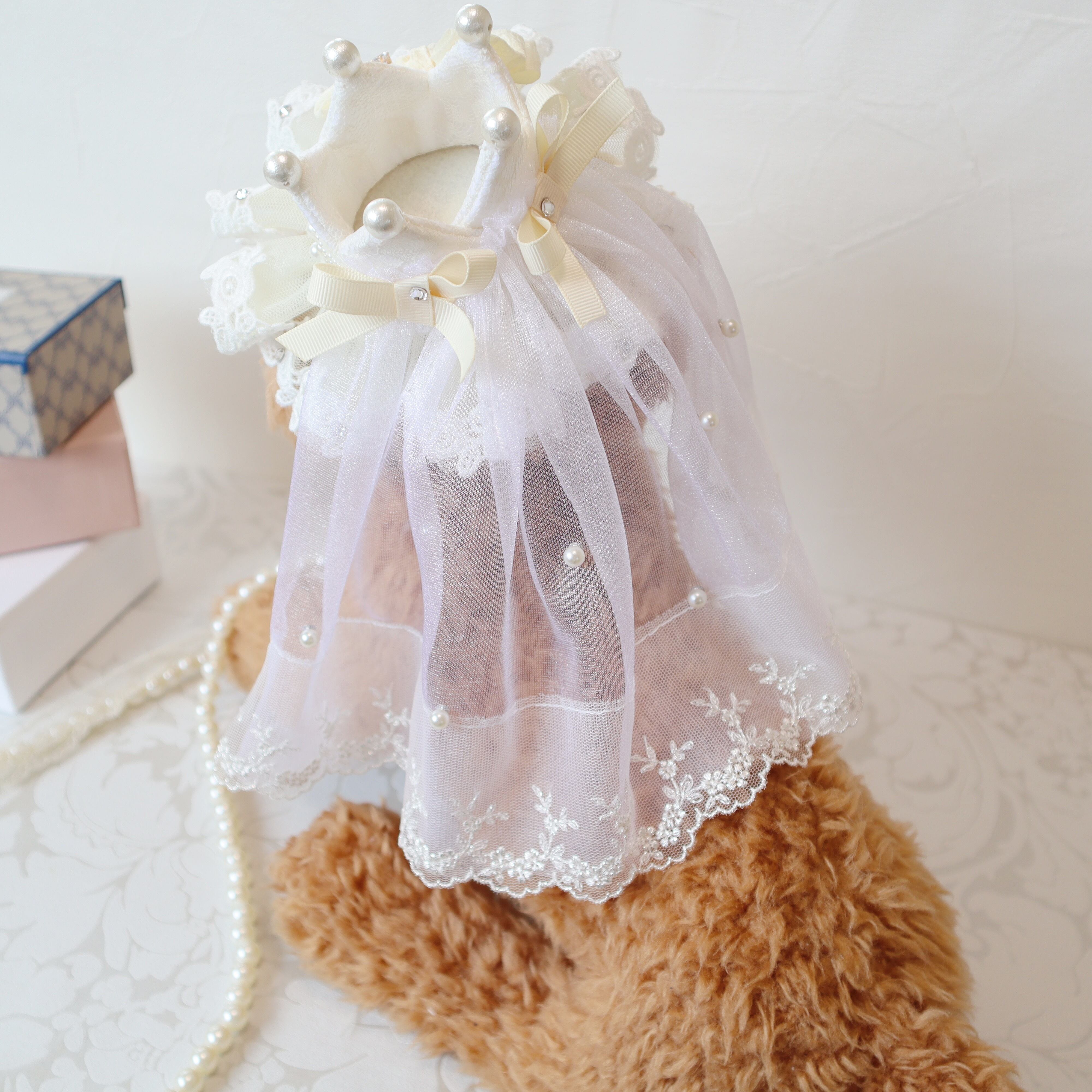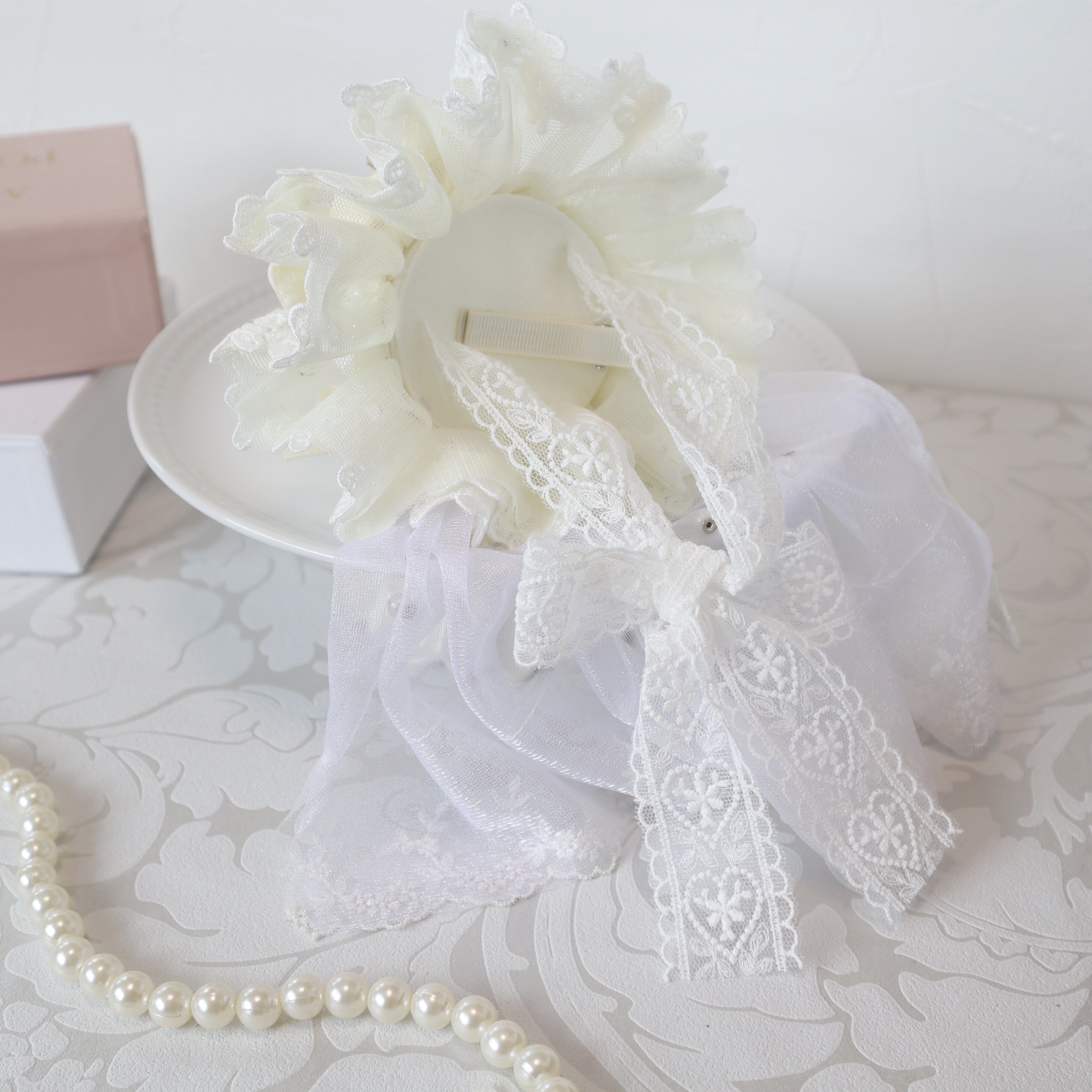 お顔周りは、ボリュームのあるフリルレースに、