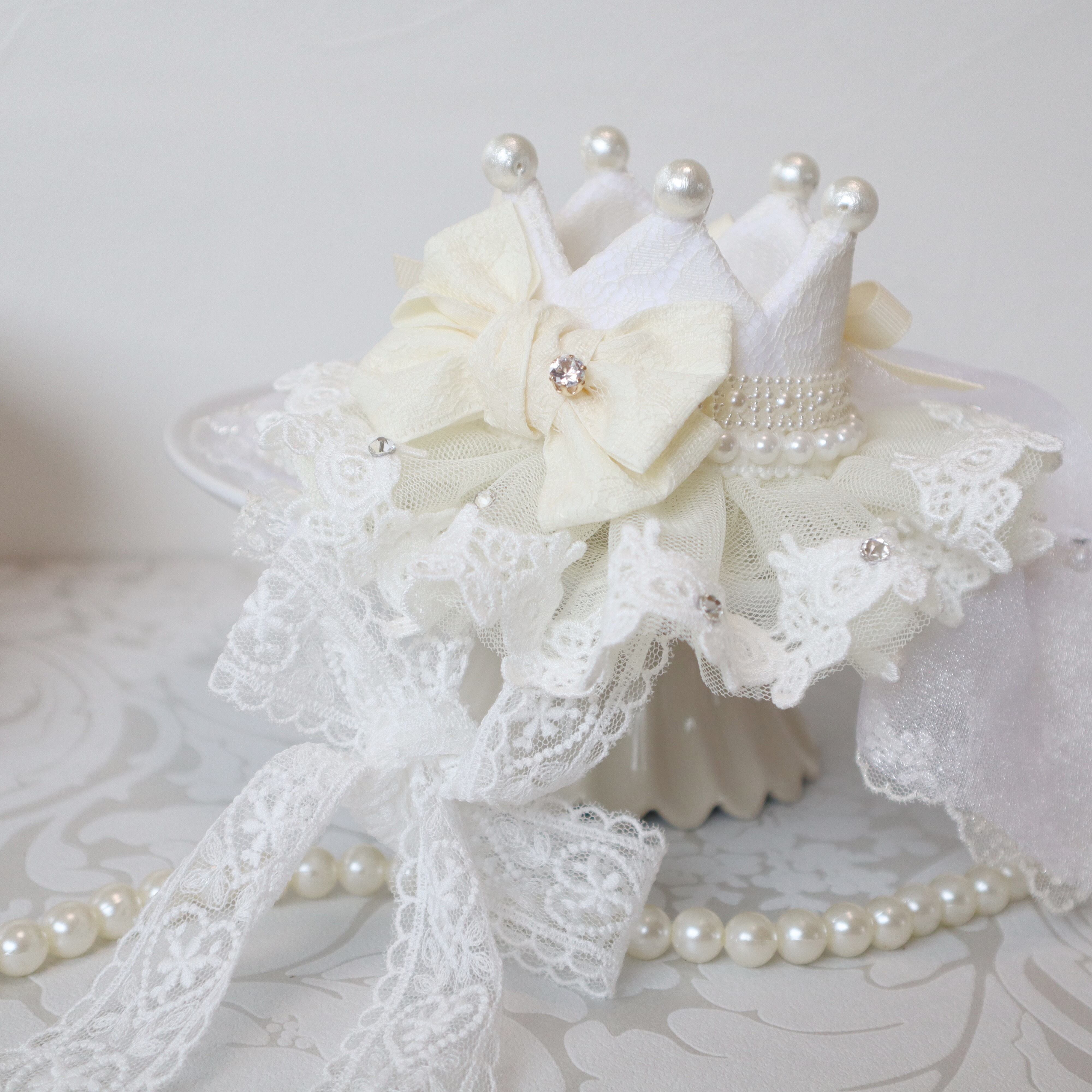 クラウンの先のパールは、高級感のあるコットンパールを使用しました^^
