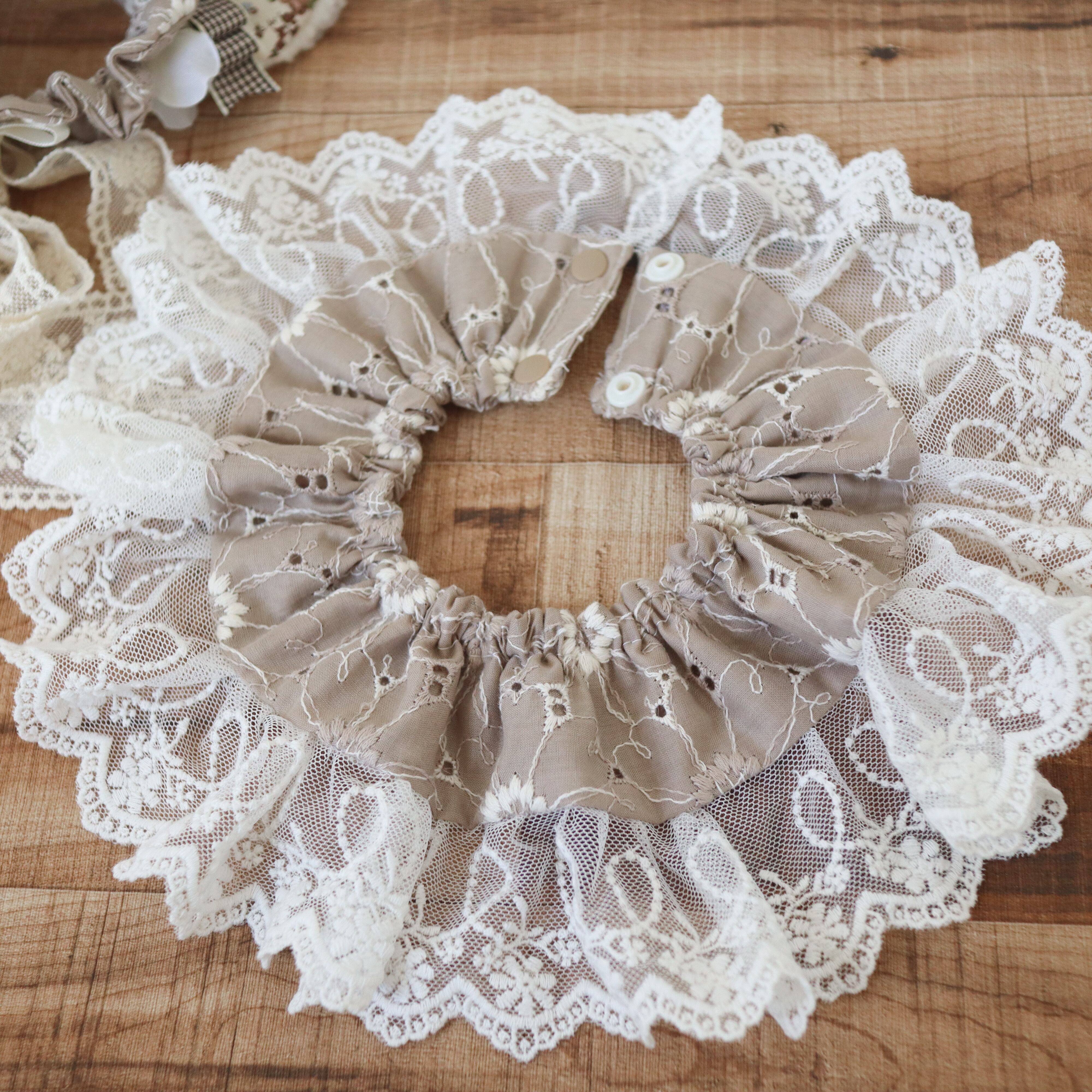 レース生地・・綿100% 首周りゴムを入れています/プラスナップにて着脱