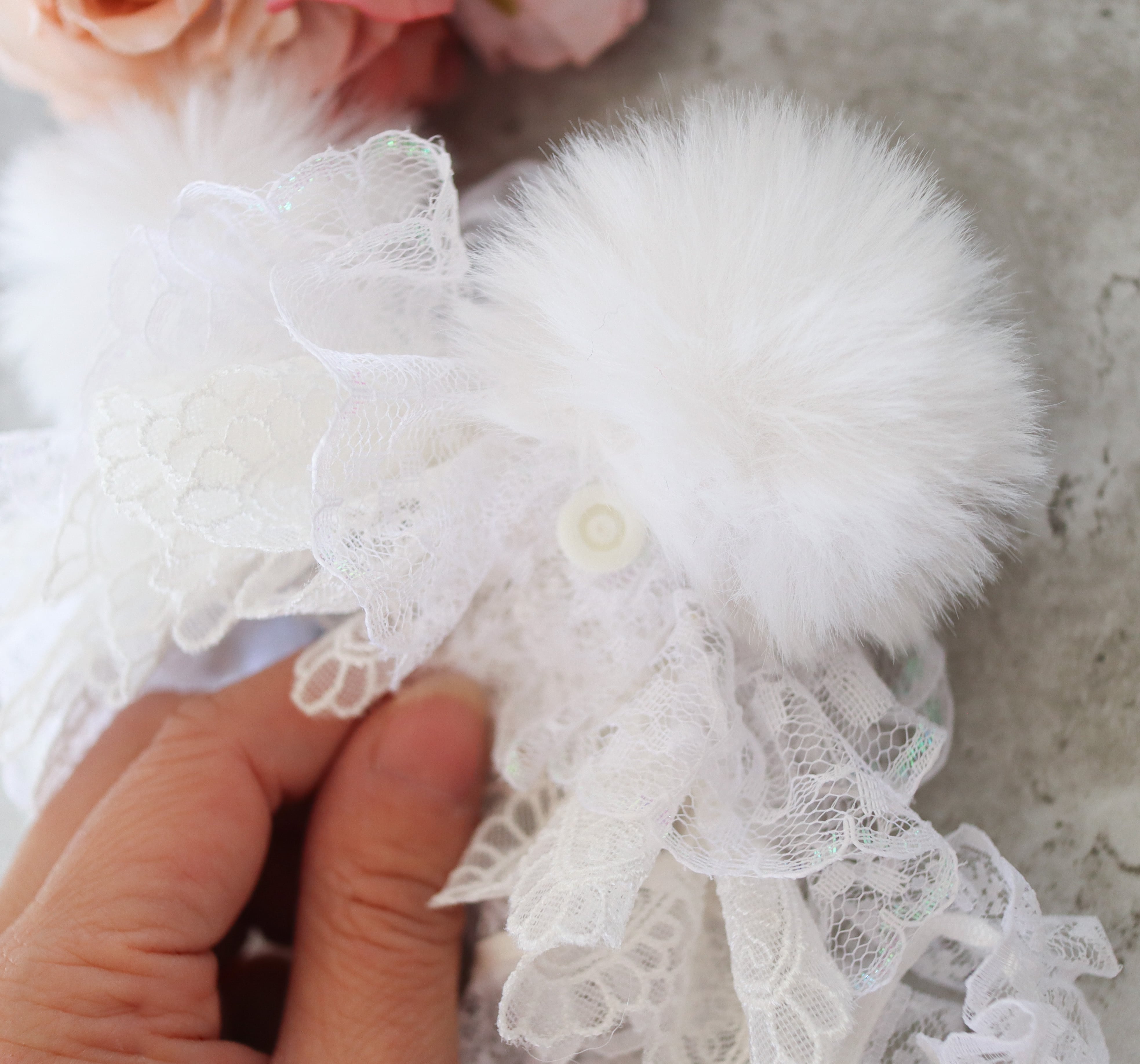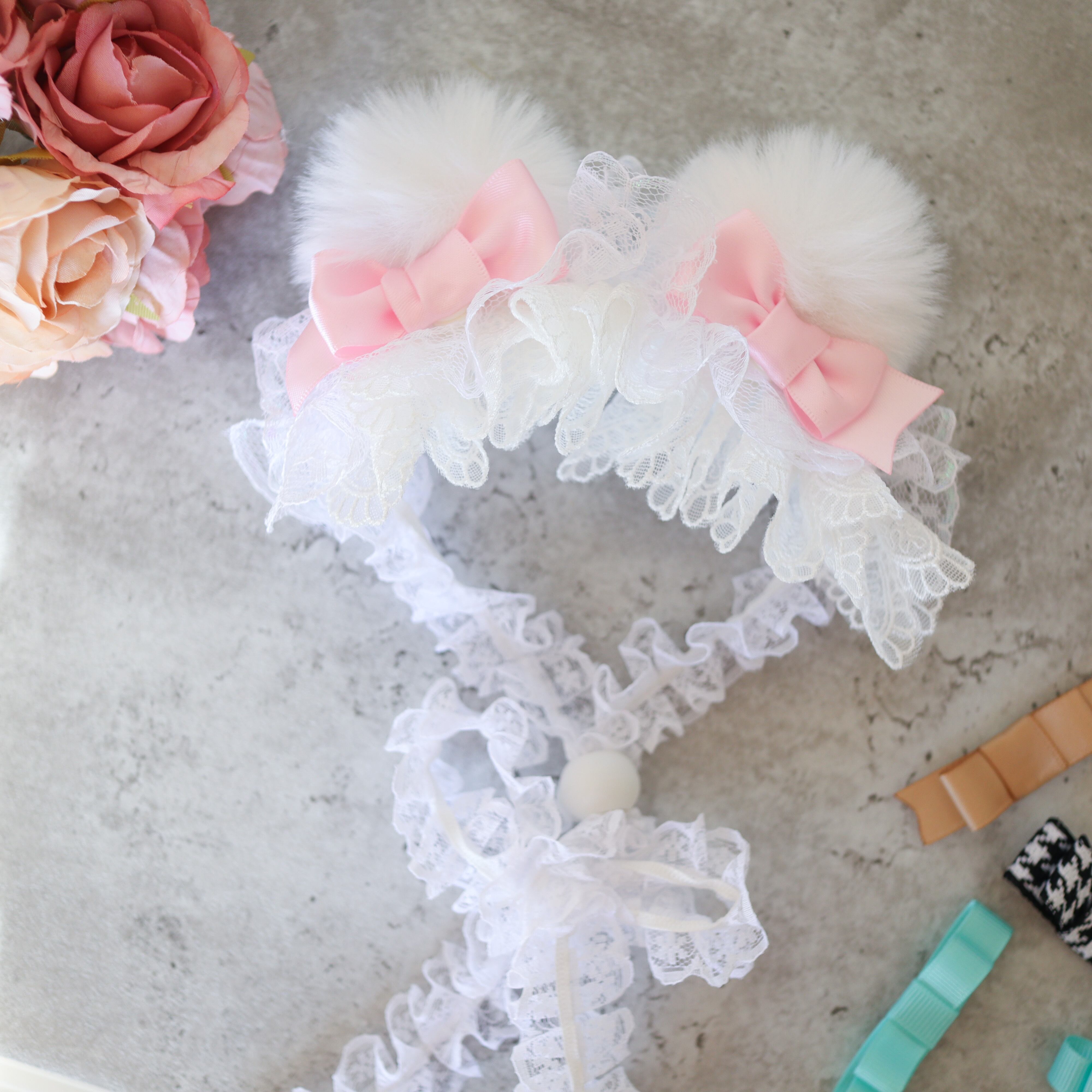(オプションより、収縮性のある違うタイプのレースリボンへ変更可能)耳穴変更不可です※