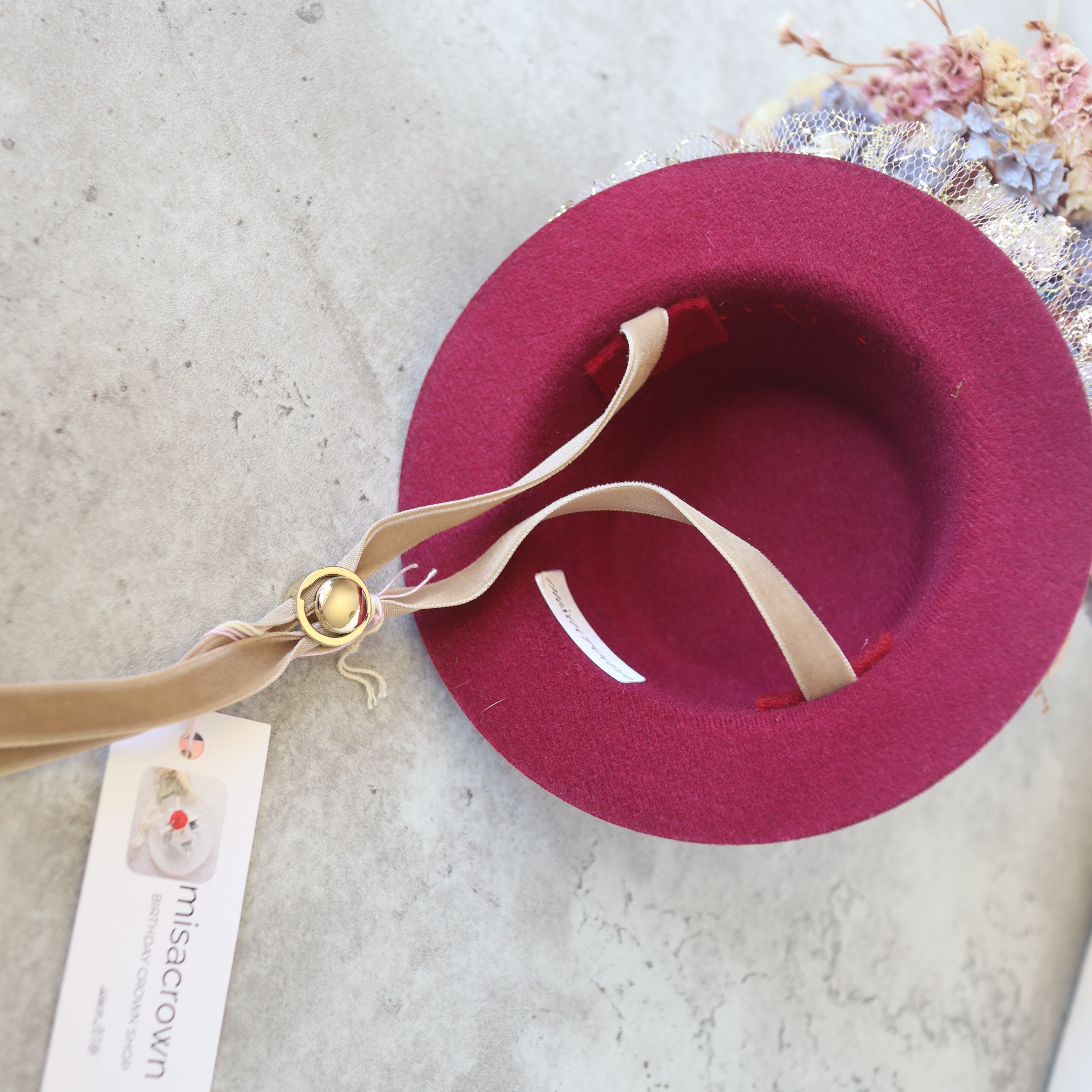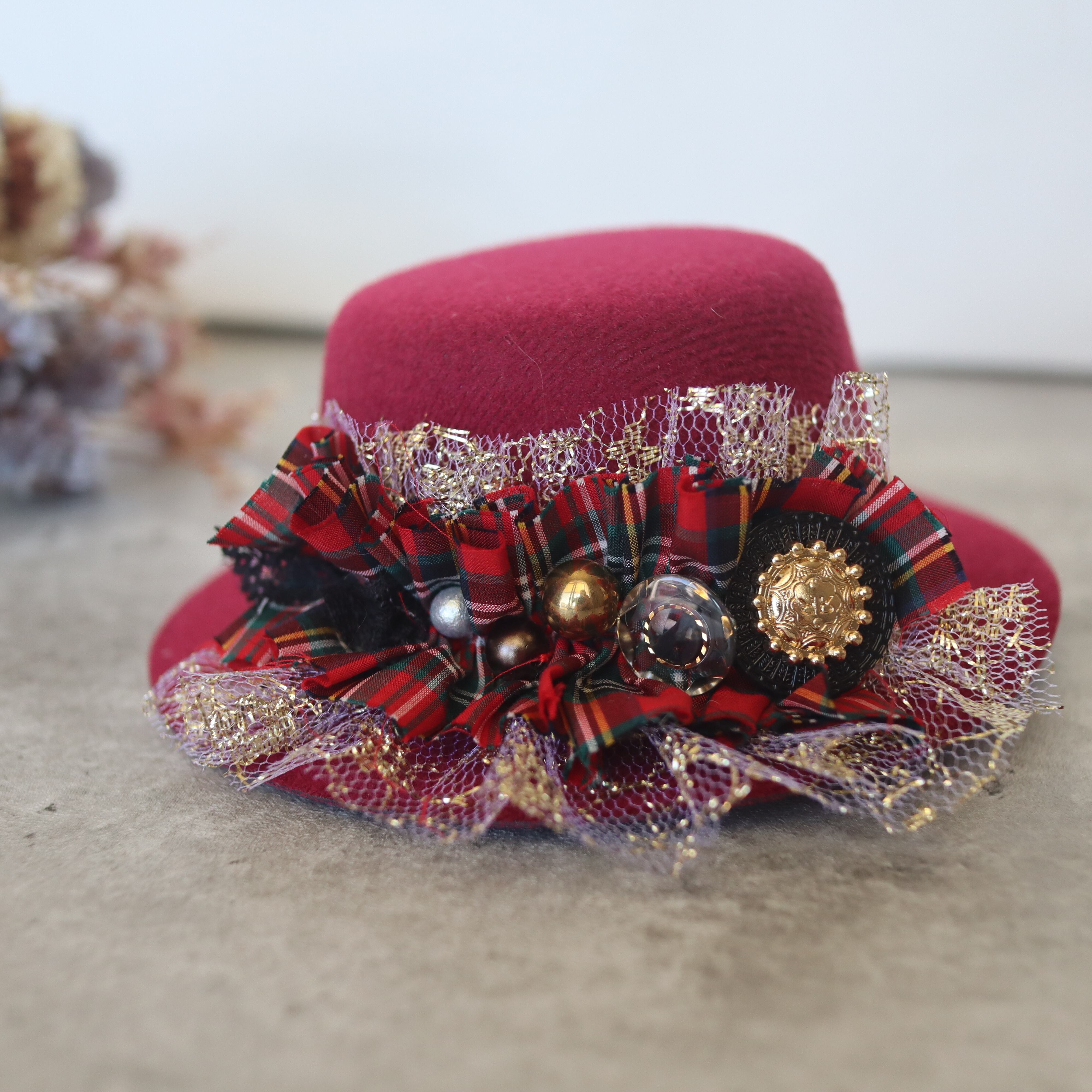 検索ワード:ペット用ハット、ヴィンテージボタン、ワインレッド、ペットファッション、特別な日、おしゃれ、愛犬、ギフト、唯一無二